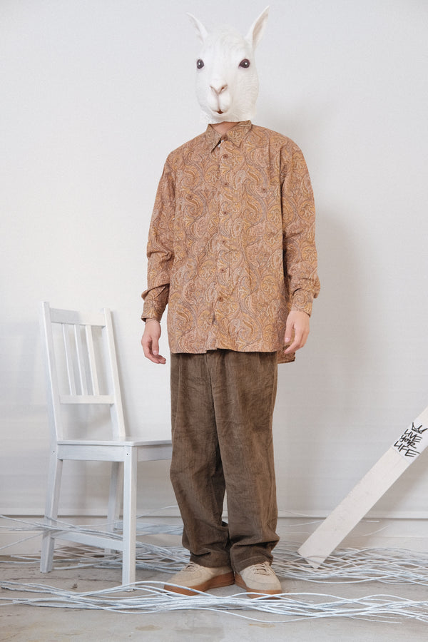 ブラウンベースのペイズリーシャツにティンバーランドのスウェットを、合わせたスタイリング。柄シャツにより、少し上品なストリートファッションになっていますよね。